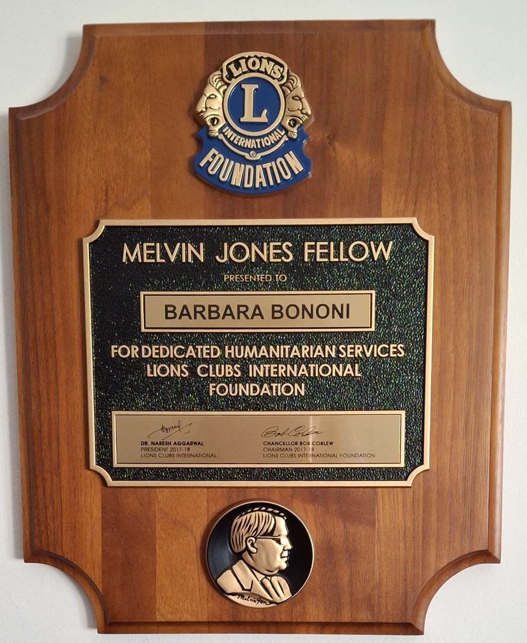 L’impegno ha portato ad ottenere, nel 2018, il riconoscimento del Melvin Jones Fellow.